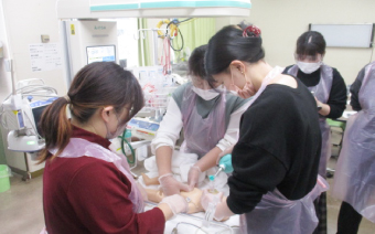 産科・小児科で働くスタッフ全員が新生児の蘇生法の技術を習得できるよう研修を開催しています。